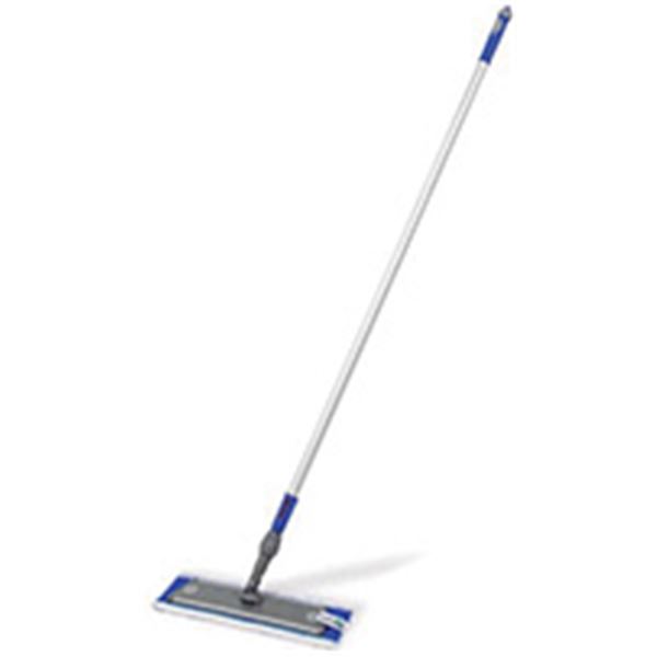e Kit se compone de un mango con depósito, un bastidor sistema velcro gris 40 cm y un recambio mopa sistema velcro Soft Striat con borde.